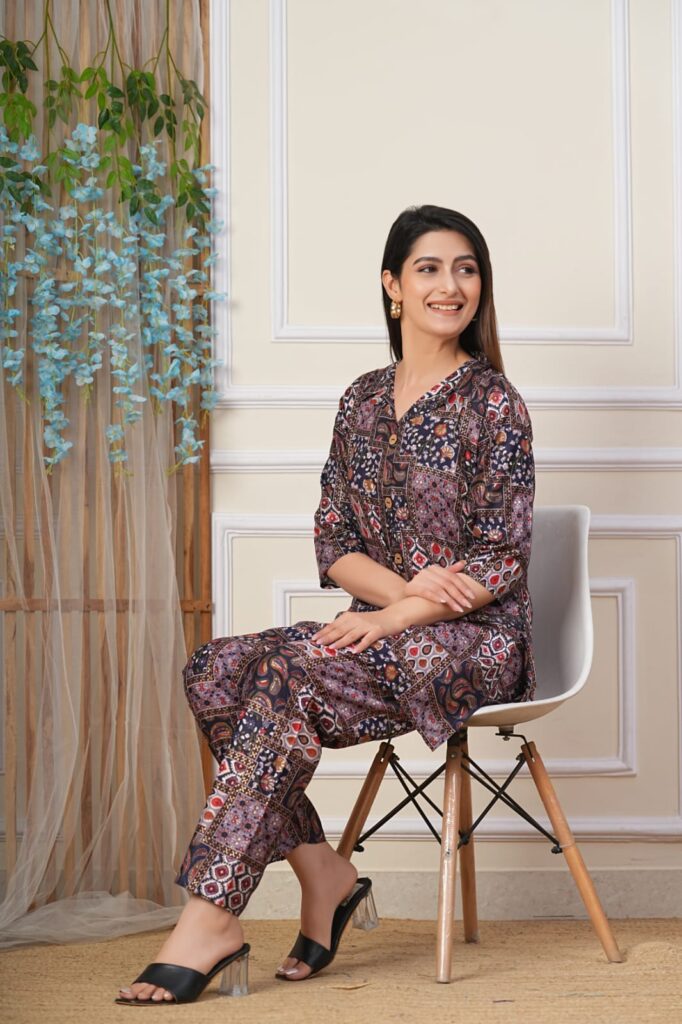 Multicolor Printed Co-Ord Set for Women – Casual Ethnic Style with Shirt & Pants